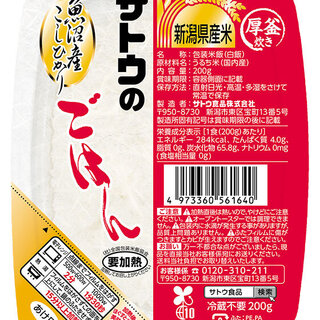 サトウのごはんは、「無添加」「国産米」「無菌パック」という3つの特長により、高い安全性とおいしさを両立している。